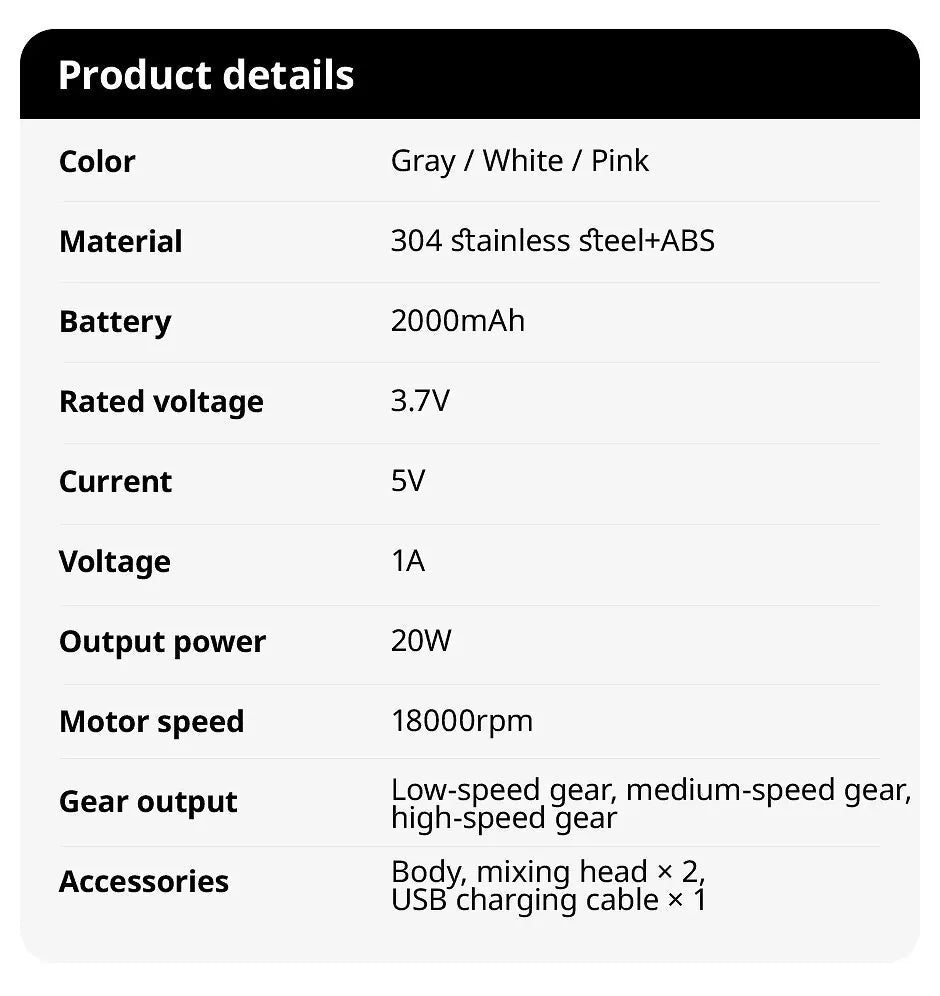 3-Speed Adjustable Mixing – Effortlessly whisk eggs, beat cream, or mix dough with three speed settings.