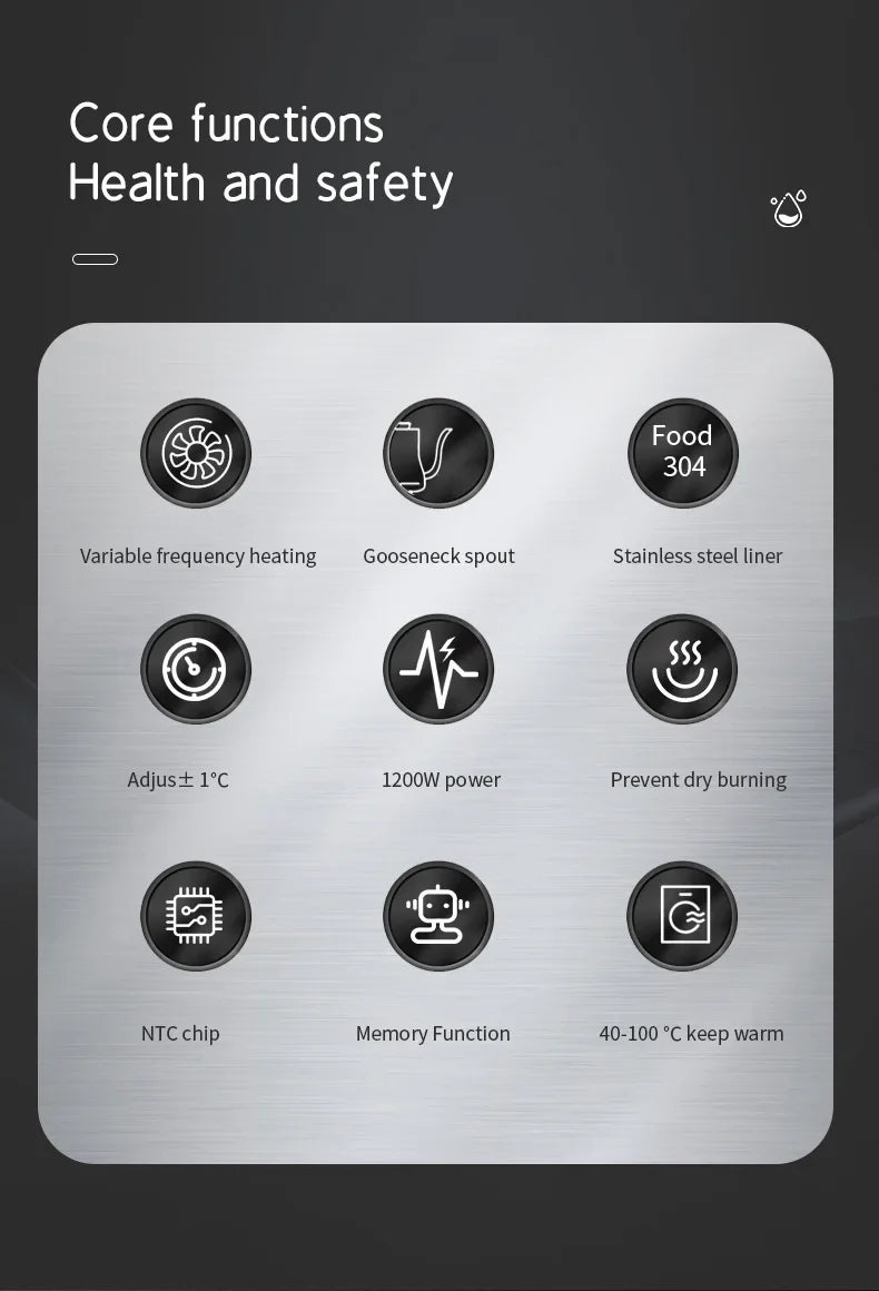 Precise Temperature Control – Set the exact temperature for perfect hand-brewed coffee, tea, or other hot beverages every time.