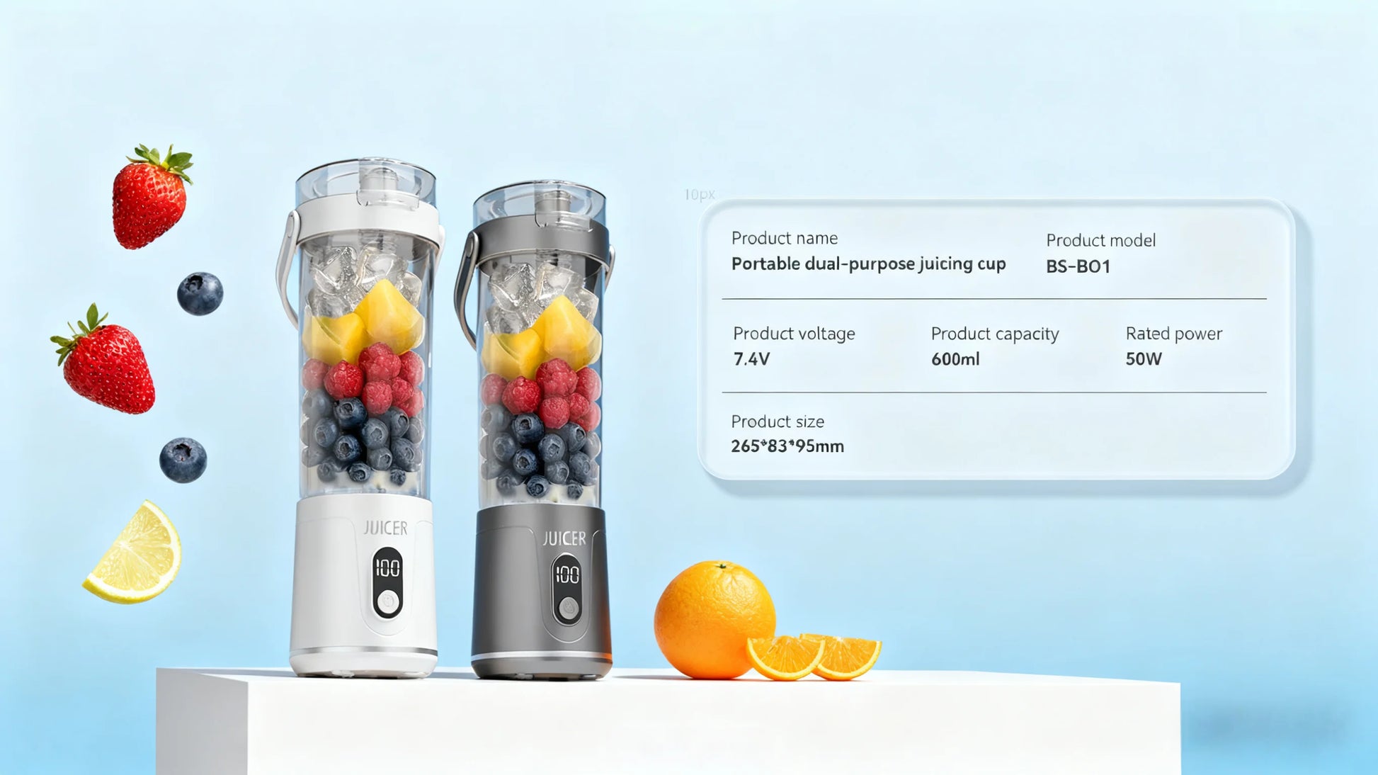 600ML Large Capacity – Perfect for making shakes, smoothies, and fresh juices in one go.
