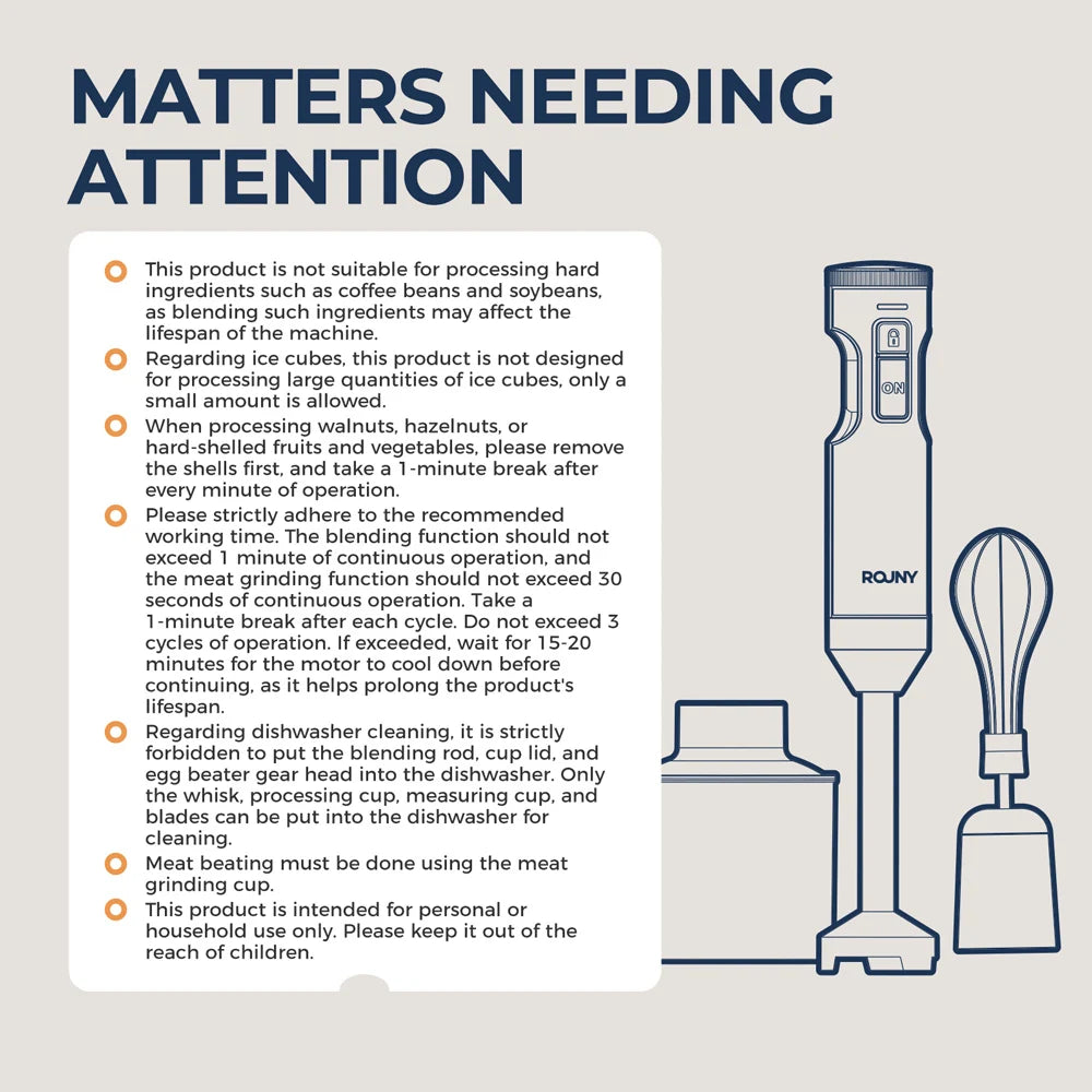 Versatile 4-in-1 Design – Includes stick blender, whisk, 700ML mixing beaker, and 500ML food processor for all kitchen tasks.